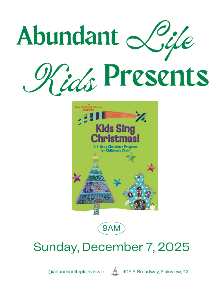 Our children’s ministry is available Sunday mornings for all children through 3rd grade. When you arrive, you will register your child with one of our Abundant Life Kids workers. You can expect your child to experience worship, Biblically-based teachings, and age-appropriate activities while at Abundant Life.